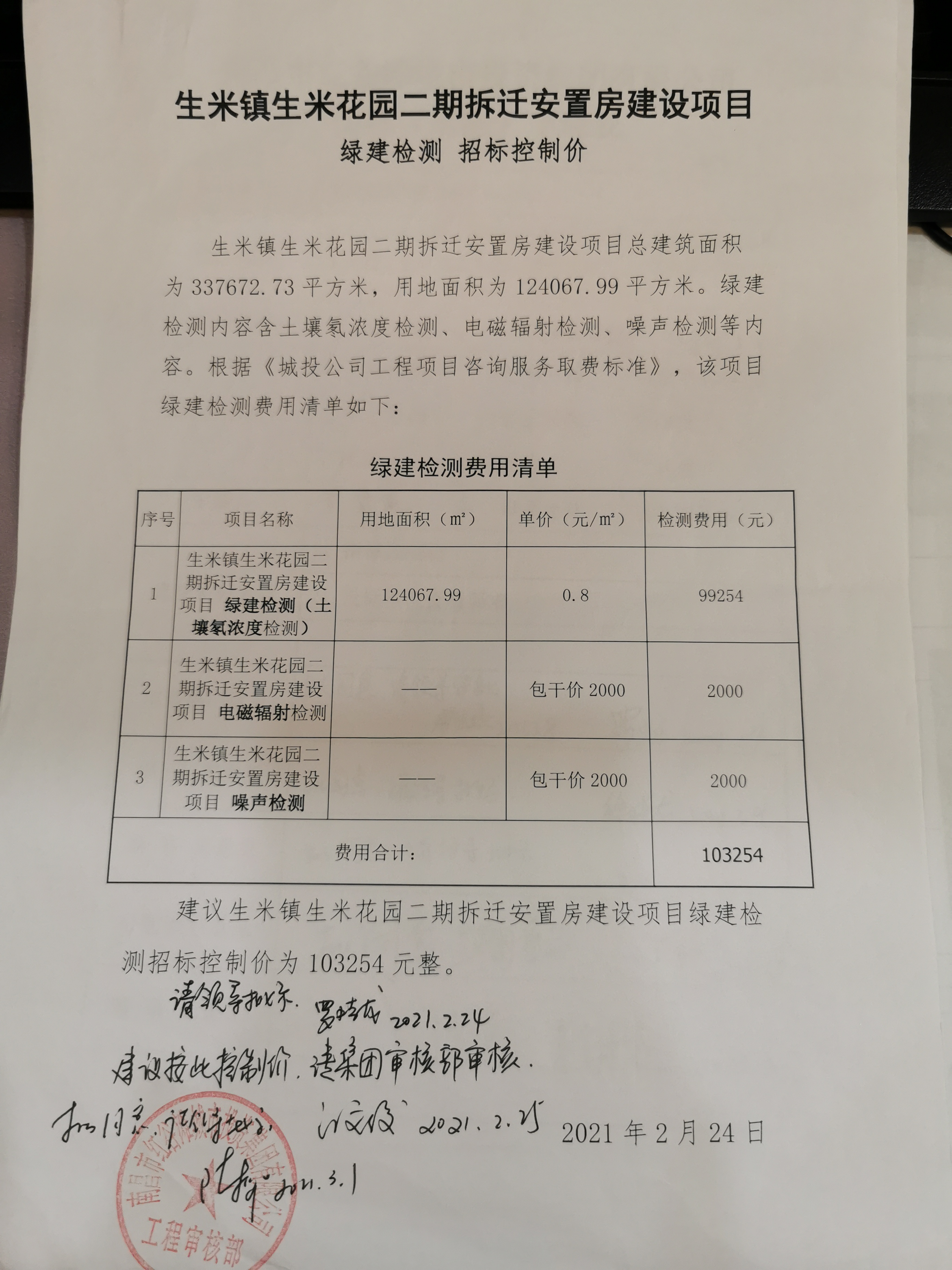 二、 招标控制价金额:103254元。